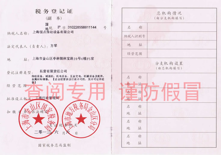 上海恒點減速機營業執照