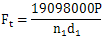 式中:F1——端面分度圓上的名義切向力 ,N;