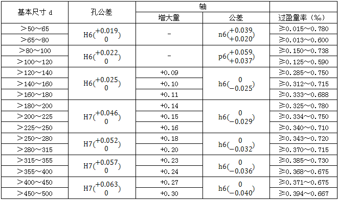 爲瞭保證齒輪的傳動精度,和防止齒輪孔與軸之間可能因産生間隙,而導緻腐蝕現象,所以當齒輪及採用H6,H7公差帶,軸採用h6公差帶時,将軸的名義尺寸加一增大量,進行輕熱配合,表1-146中所列的輕熱壓配合尺寸,僅适用於鍵聯結的情況下。