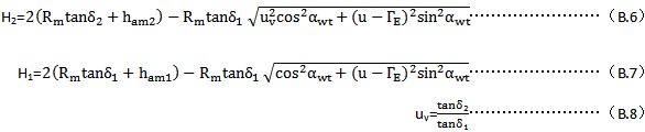 錐齒輪的邊疆接觸區爲稍帶錐度的帶狀形。然而,在大多數情況,可較好地用平行的帶狀接觸區來近似,連同兩個切向速度的重合並(bìng)在方向上與長軸垂直,尤其是當曲率半徑的正確定值和赫茲接觸帶已知時,可直執著(zhe)使用權原來的公式(A.1)。爲瞭方便起見,公式可以被改寫,即用直線來近似“8”字作用線,並(bìng)且系數用錐齒輪的一般量來表達 。