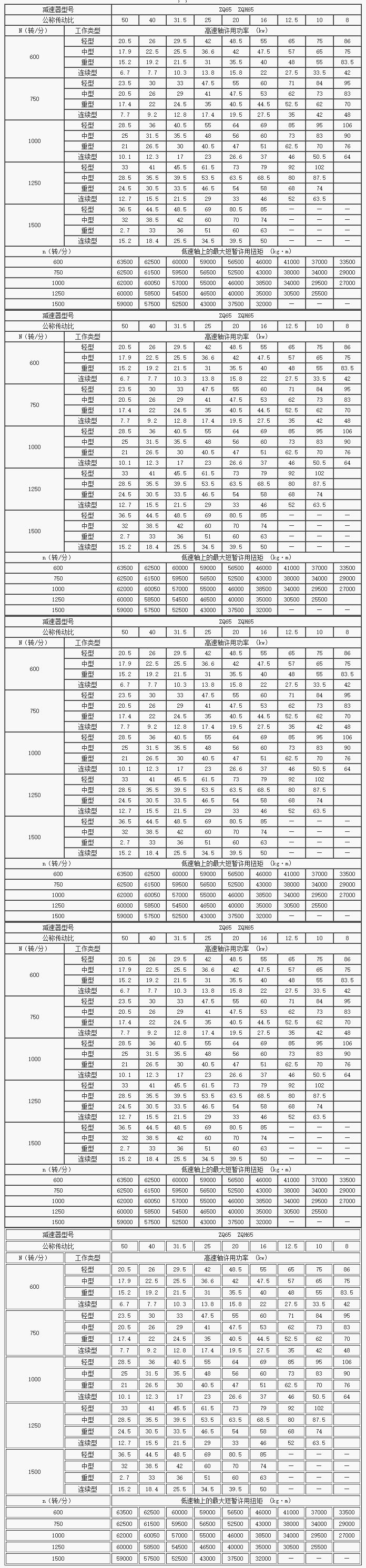 ZQ、ZQH型圓柱齒輪減速器承載能力(JB1585-75) 2015-09-03