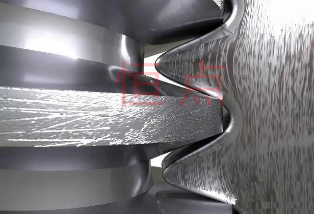 螺旋齒輪(交叉斜齒輪),它們的運動以楔形或螺旋爲主 ,齒面高度滑動,易於裝配,具有相同的法向徑槽,它們可以朝同一個方向,也可以朝相反的方向。