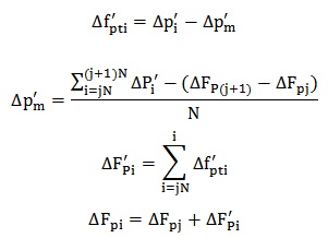從跨齒測量數據中求取ΔFp的方法列於表3、4、5、6、7,以Z=60跨齒數N=6,分組數Q=10爲例。