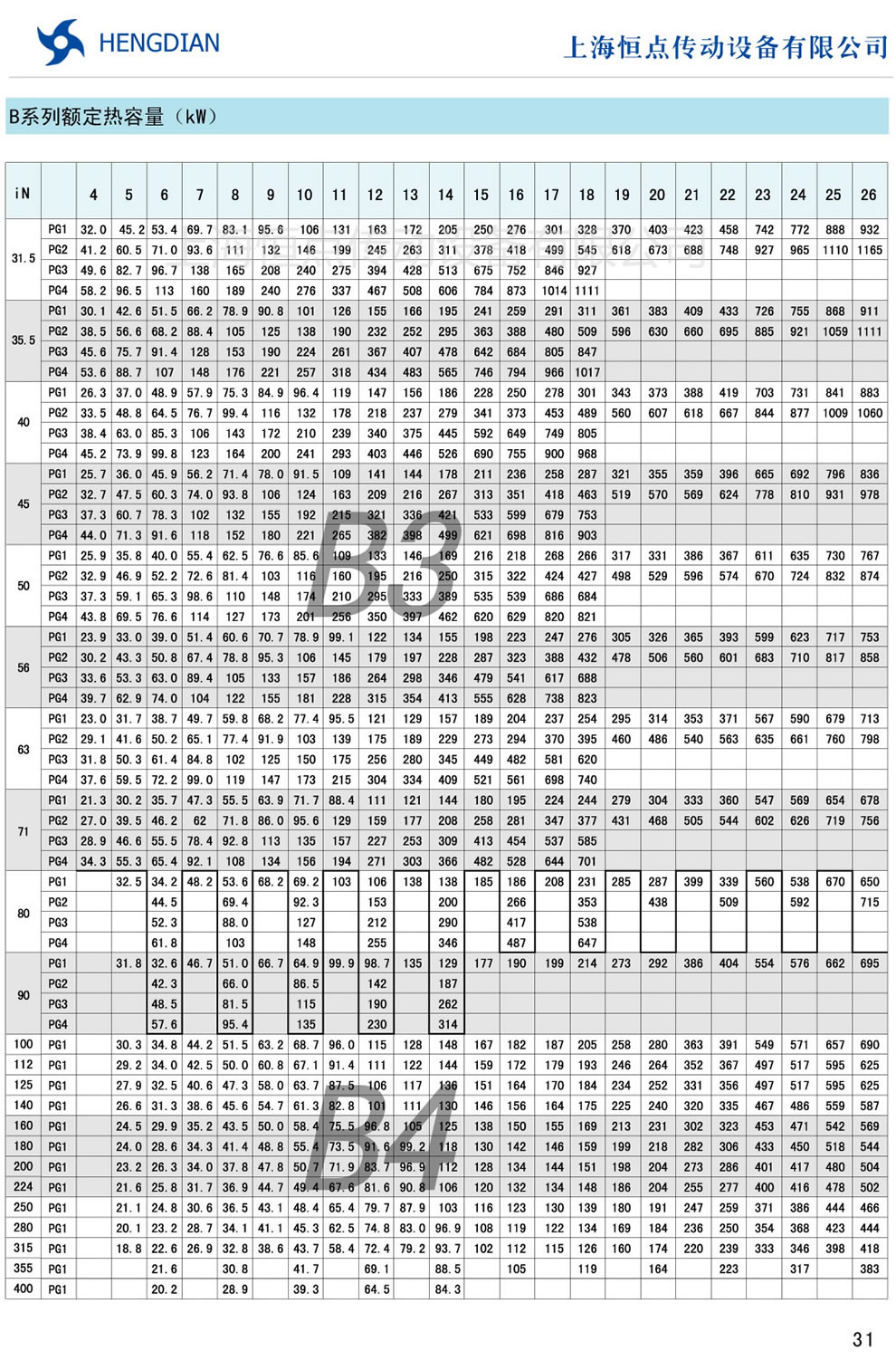B系列額定熱容量 - HB标準工業齒輪箱